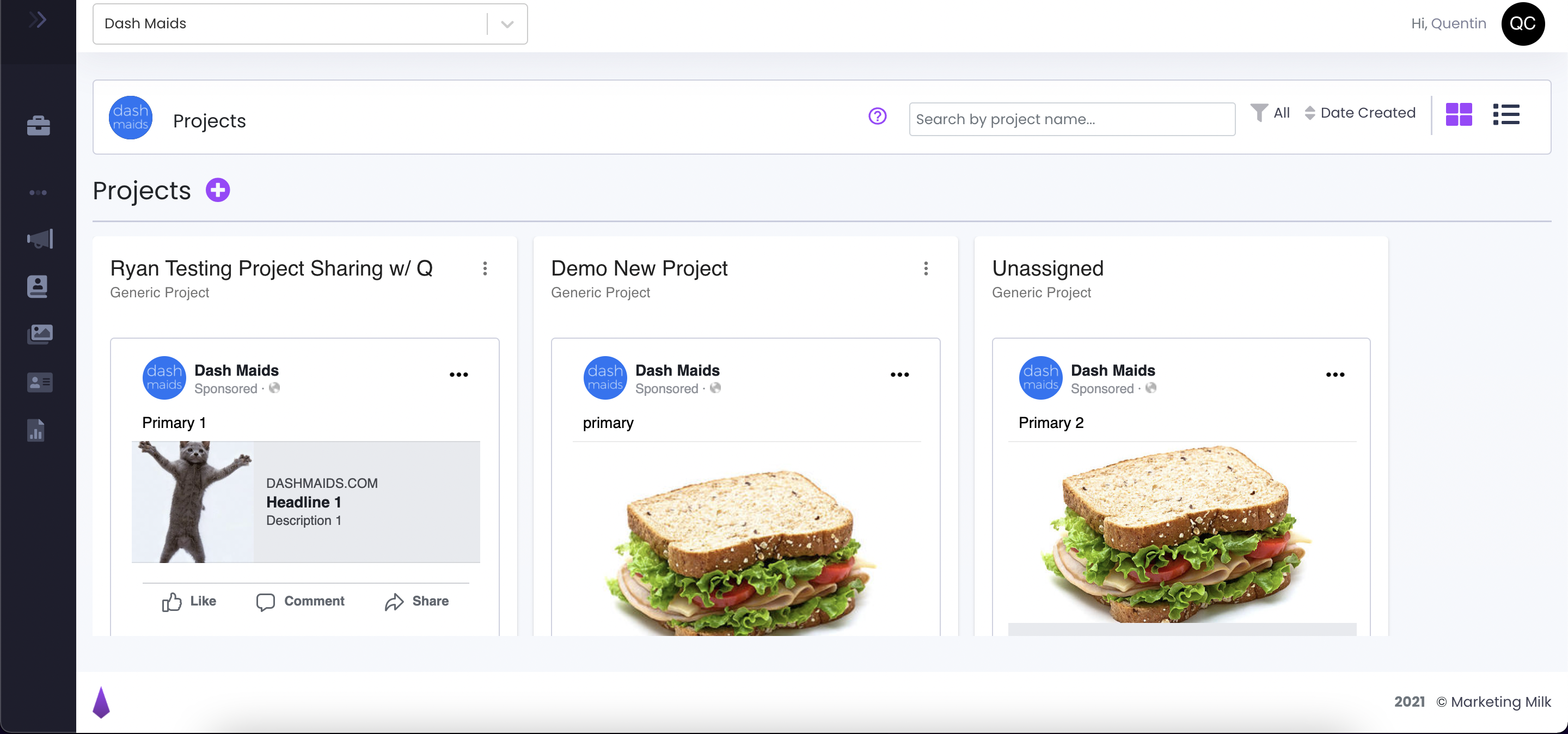 Back to Project Button - This will take the user back to the Projects Creative selection Screen