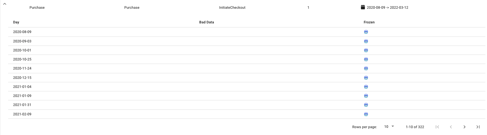 Once the Bad Data Submission has been approved, you should notice in your event mappings table that your submitted date range has been marked as “bad”. This means these dates are ready to be re-uploaded.