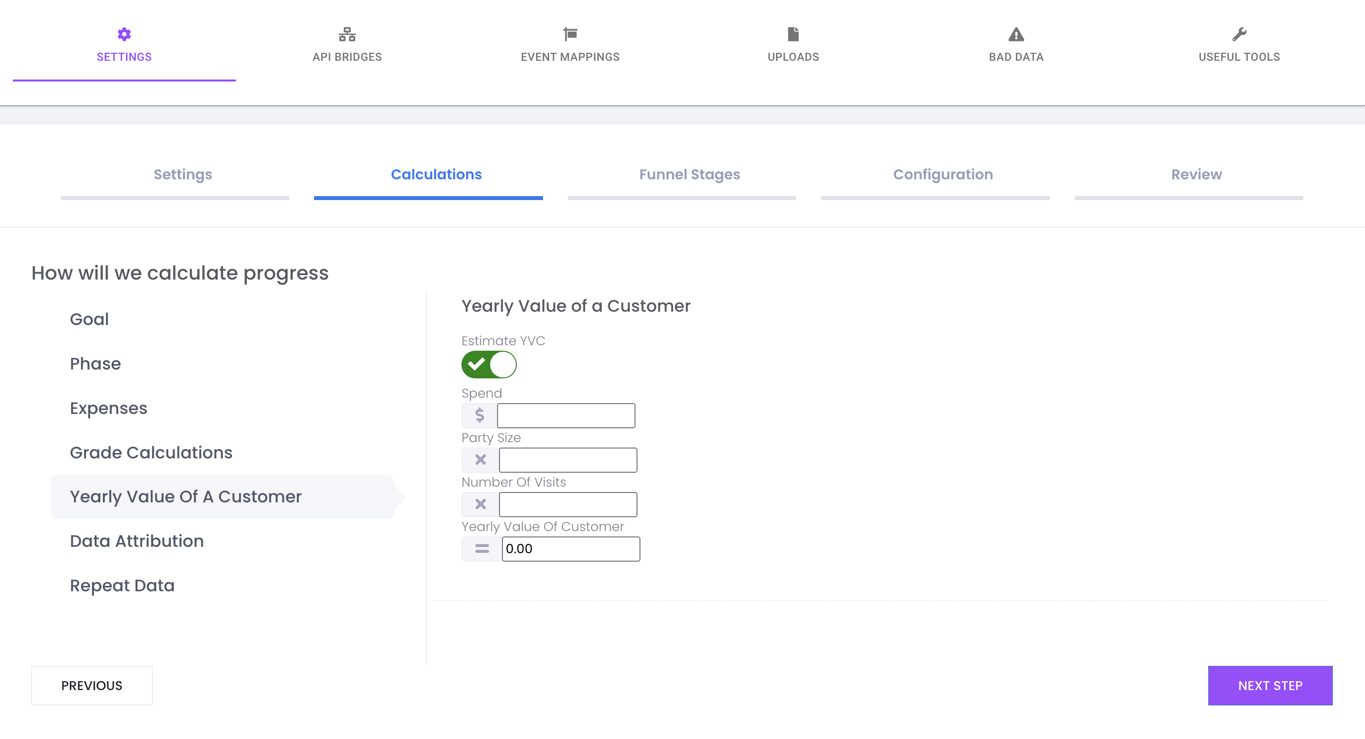 can be found in the Admin Panel for your Client Dashboard under Settings>Calculations>Yearly Value of A Customer